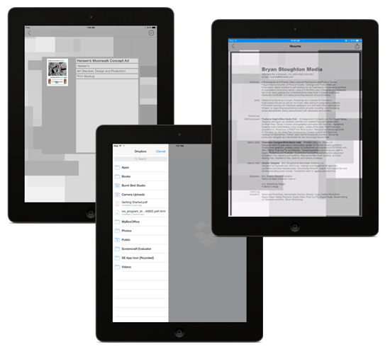 Load your logo, watermark, custom background image and zipped portfolios into the app straight from your dropbox folders. (Dropbox app required)