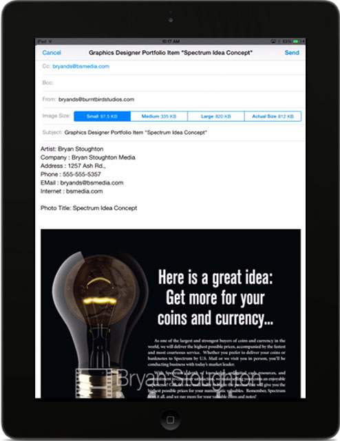 Email your individual custom watermarked images right out of the app to your potential customers or your current clients.